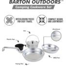 This handy cooking set is a good quality at an affordable price and comes packed in a plain brown box. This cookware set is specifically designed to be compact for camping and has multiple pieces including a: