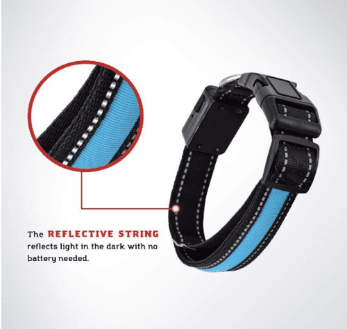 - 【HIGH VISIBILITY IN THE DARK】 With high brightness LED, this collar can be easily seen in the night. Reflective strings with neoprene-padded handle improve visibility in the dark.
