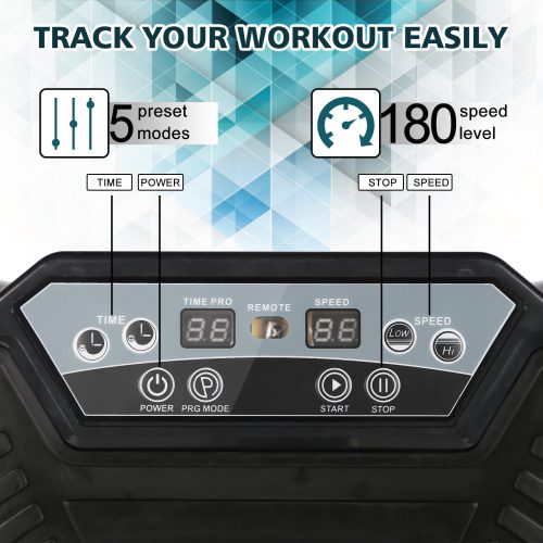 • Control Mode – Control power, timer and speed setting by clicking button on the platform, remote control also optional for your convenience.