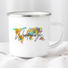 ☕️ White enamel mugs crafted from cast iron with stainless steel rim.